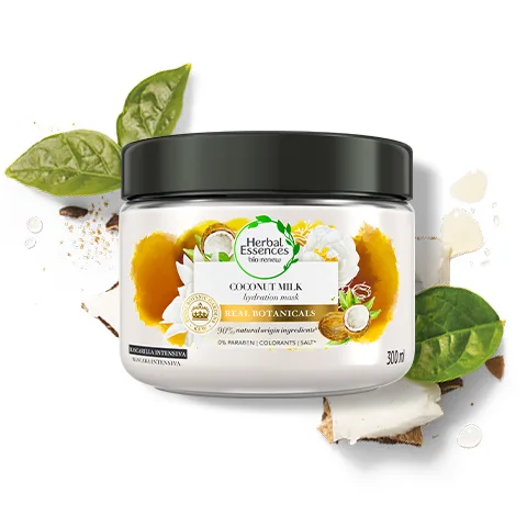 La nueva mascarilla hidratante para cabello de Herbal Essences Bio Renew Leche de Coco y Aloe es especialmente diseñada para brindar una hidratación potente a tu cabello seco y con frizz. Su fórmula, libre de parabenos y colorantes, con aloe puro y leche de coco, nutre profundamente cada hebra creando una capa protectora contra el frizz, dejándolo suave, manejable para que luzca lleno de vida. Su fragancia con notas de coco cremoso, jazmines frescos y deliciosa vainilla te llevará en un viaje a regiones tropicales. Aplícala sobre el cabello húmedo desde la mitad hasta las puntas, déjala actuar durante al menos un minuto y luego enjuaga bien el pelo.