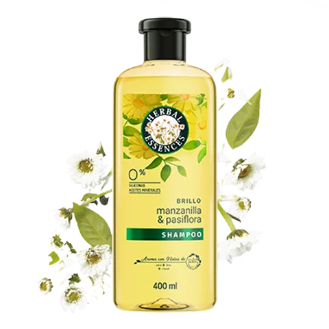 ¡El shampoo Shine con manzanilla de Herbal Essences alegrará tu día! Nuestra fórmula sin siliconas limpia a fondo tu pelo para revelar un aspecto brillante y saludable. Elaborado con una mezcla especial de extractos de pasiflora, manzanilla y sábila para una experiencia estimulante.